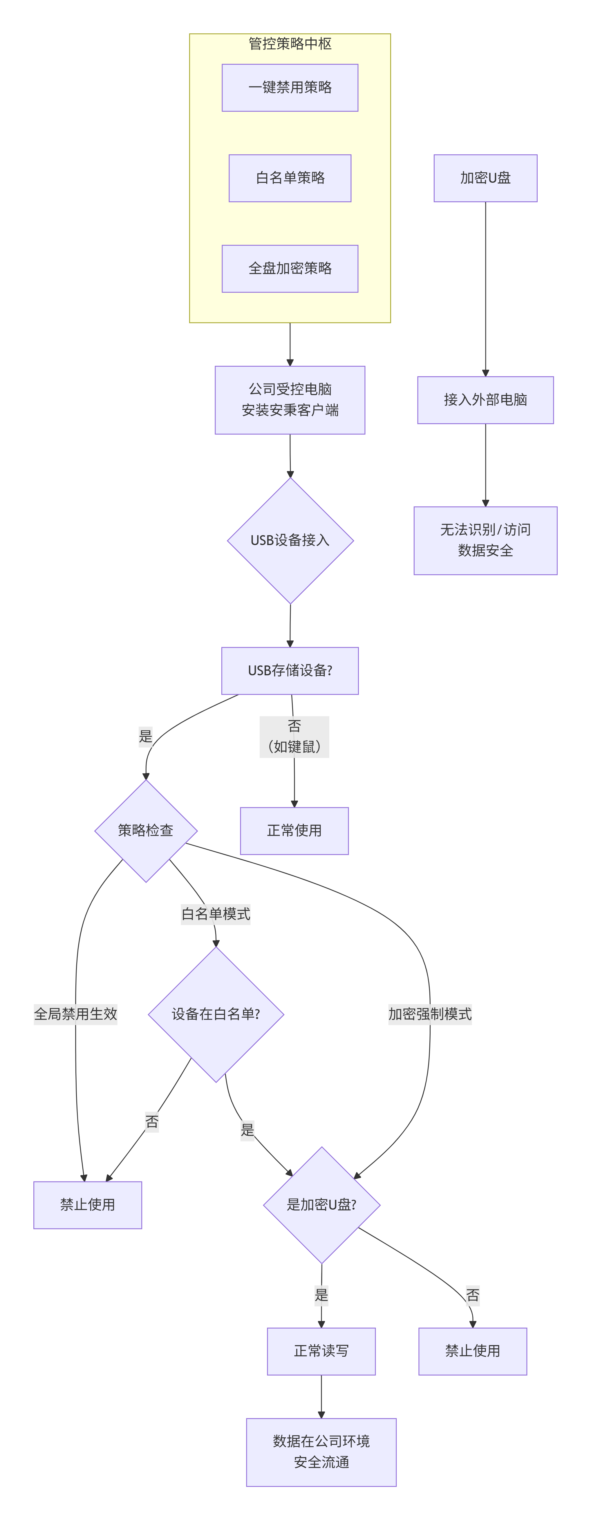 为了更直观地展示安秉USB管控三大功能的关系与效果,下图清晰地描绘了其运作逻辑:
