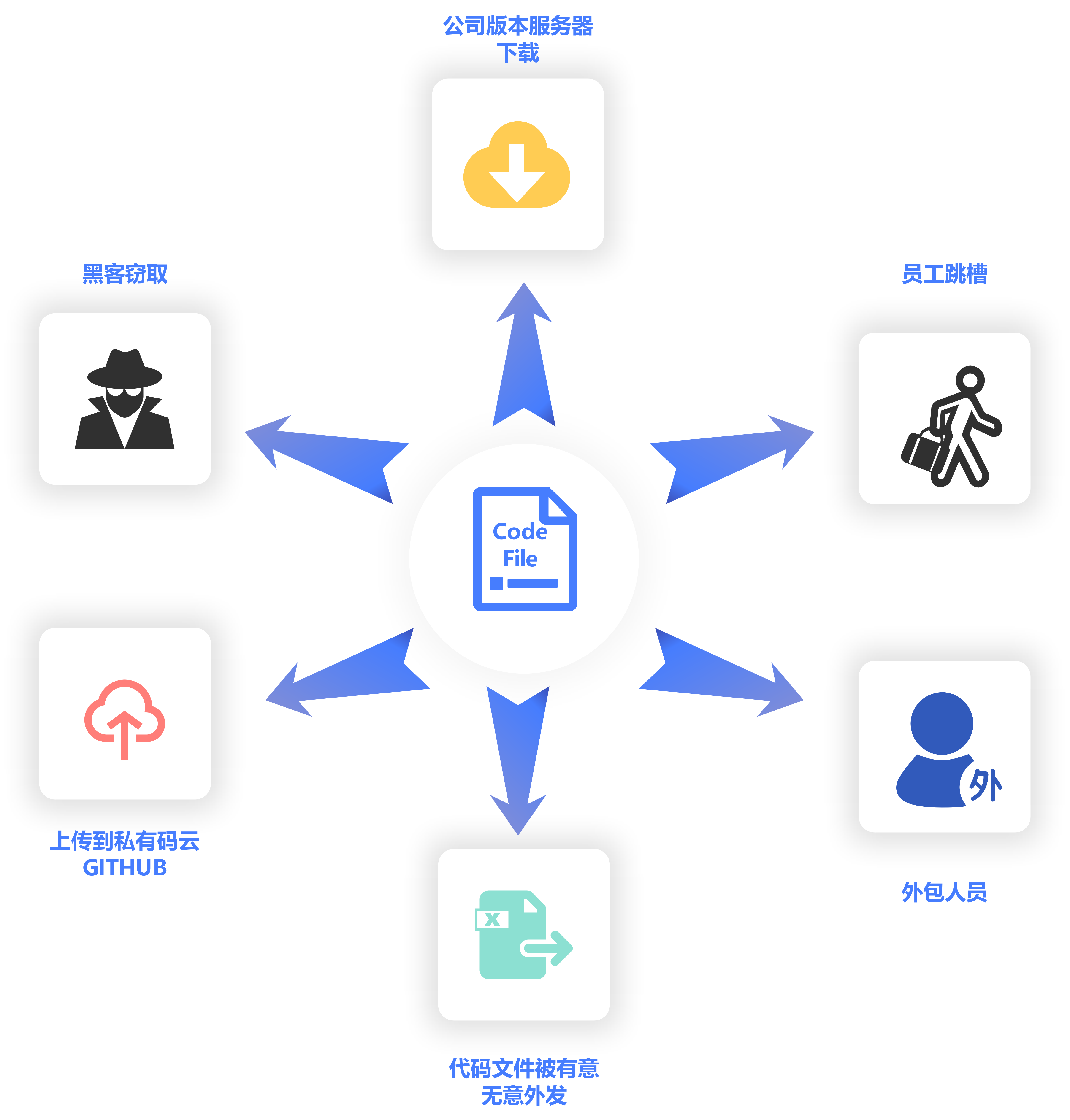 通过以上我们对源代码泄漏方式的了解,我们可以很清晰的认识如何做源代码防泄密,其实只用管好员工本地的代码,也管理版本管理服务器的代码,并且在管好的情况,尽最大的可能不影响员工的工作。 源代码防泄密最基本的需要管控的两个地方:员工本地电脑和版本管理服务器